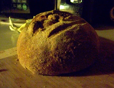 But, it was pretty easy to whip up and it turned out pretty dang good. Made 3 loaves and there's one left. Here's a sexy, low-light picture of one of them: