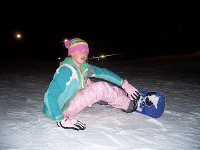 So, we got there and finally hit the slopes - and hit em she did. Though here's one of the more upright pictures you'll see of Boo: