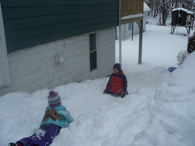 The best part of this is that he was her 2nd choice as far as boys go. So, with the air a brisk 15 degrees yesterday, they tore the yard up. We've got a good foot of snow right now, so the kids love it.