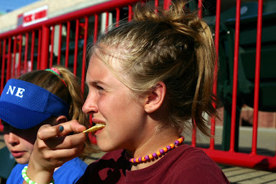 so, we then settle in to a night of eating, watching, covering our eyes from the sun cause the 1st base seats are looking right into the sun until about the 6th inning or so - bad design.